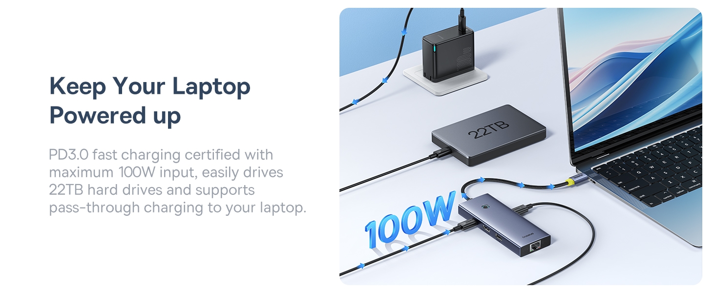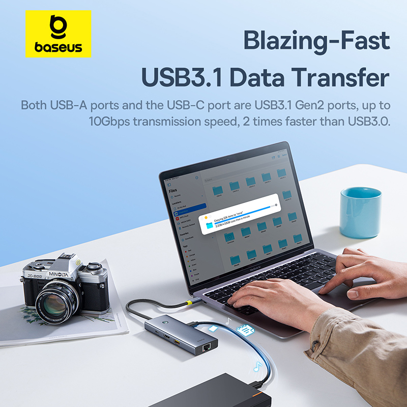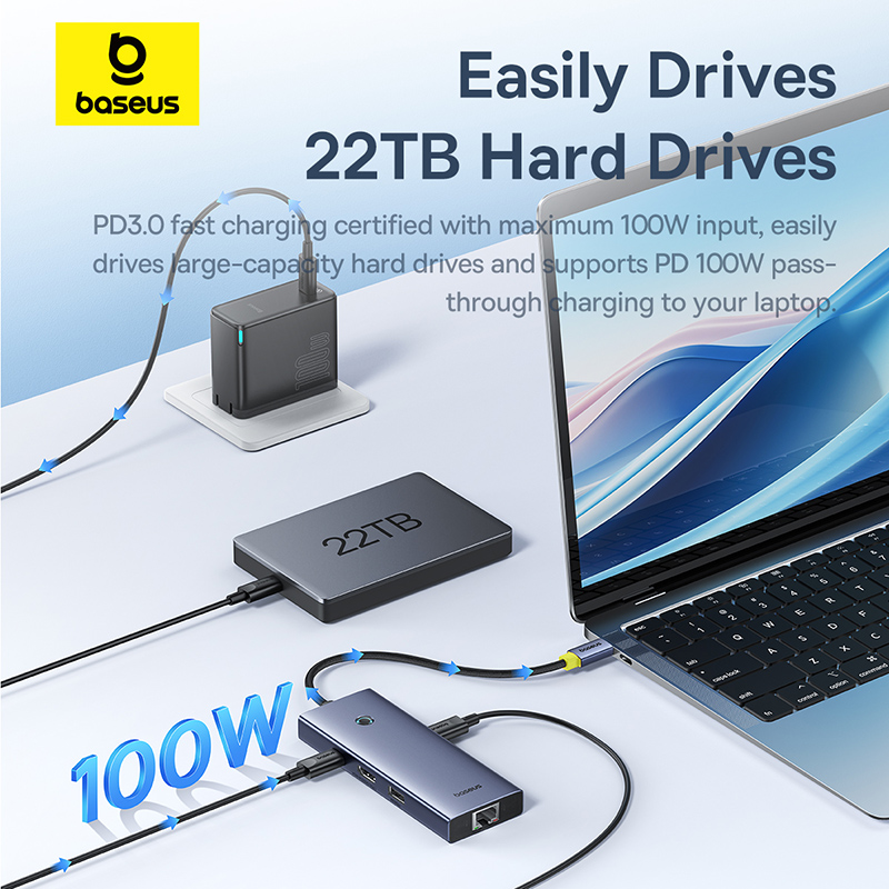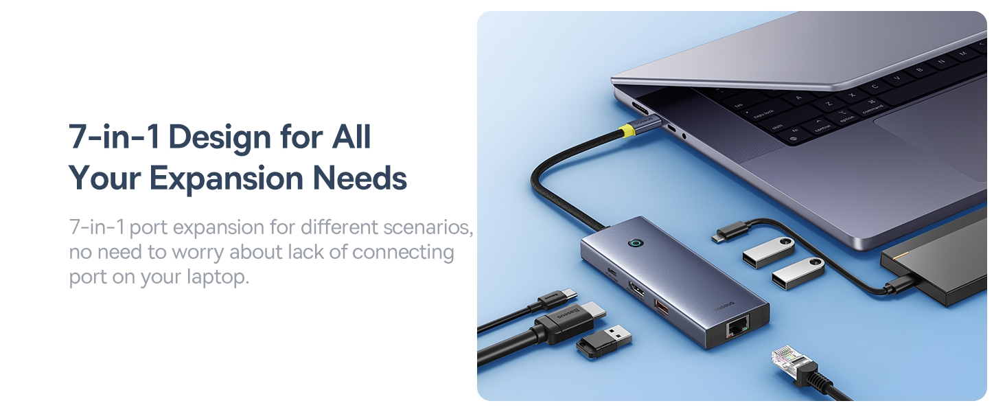 Boost your productivity with the Baseus UltraJoy Series 7-Port USB-C Hub Docking Station, engineered for fast data transfer, stable connectivity, and crystal-clear 4K display output. A perfect all-in-one solution for modern laptops and USB-C devices.