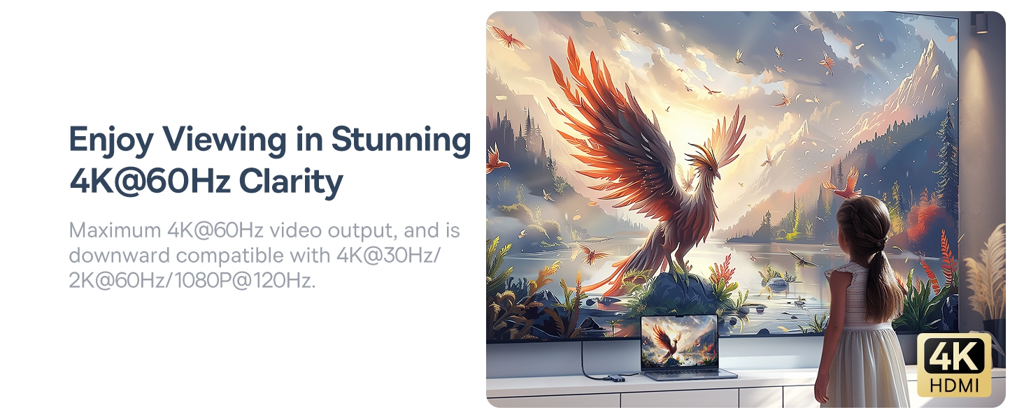 Instantly expand one USB-C port into 7 powerful and versatile ports.HDMI 4K Output @ 60Hz