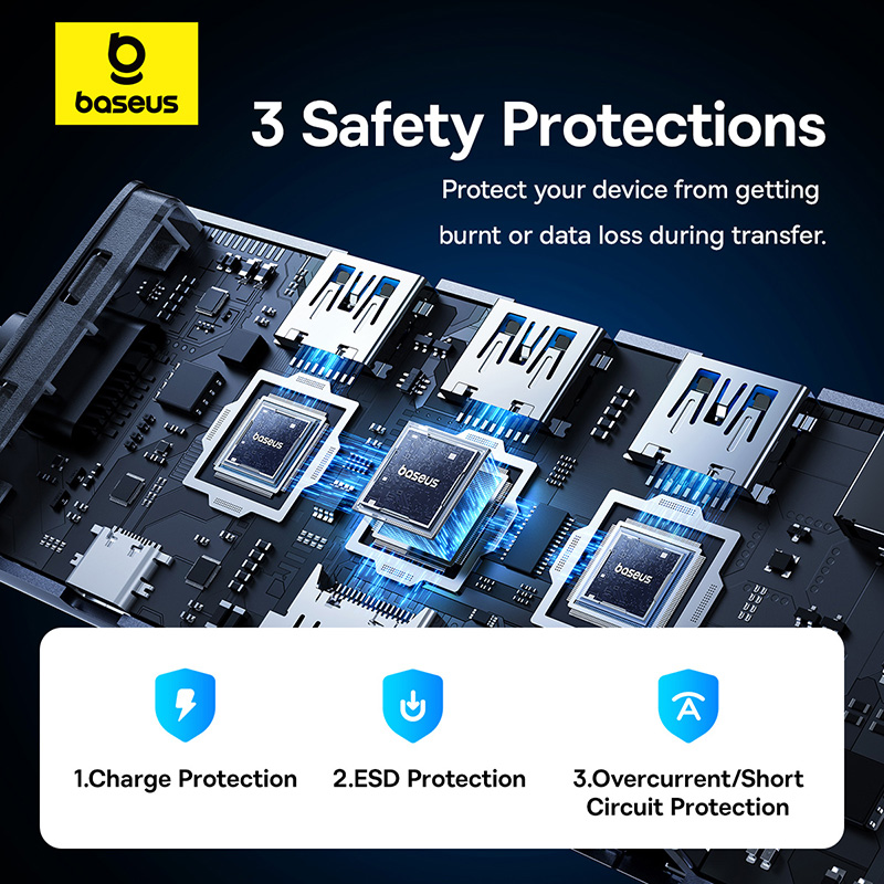 Simplify your setup with the Baseus 10-in-1 UltraJoy Hub. Enjoy 4K HDMI, USB 3.0, Ethernet, SD/TF card readers, and fast PD charging in one compact device